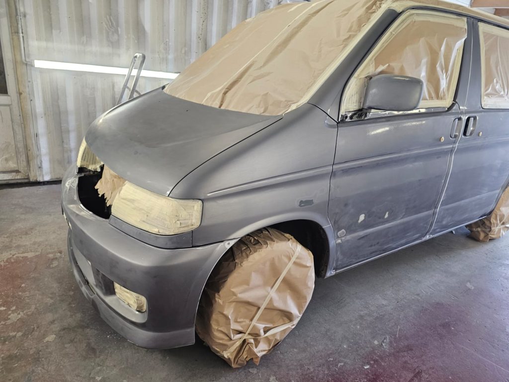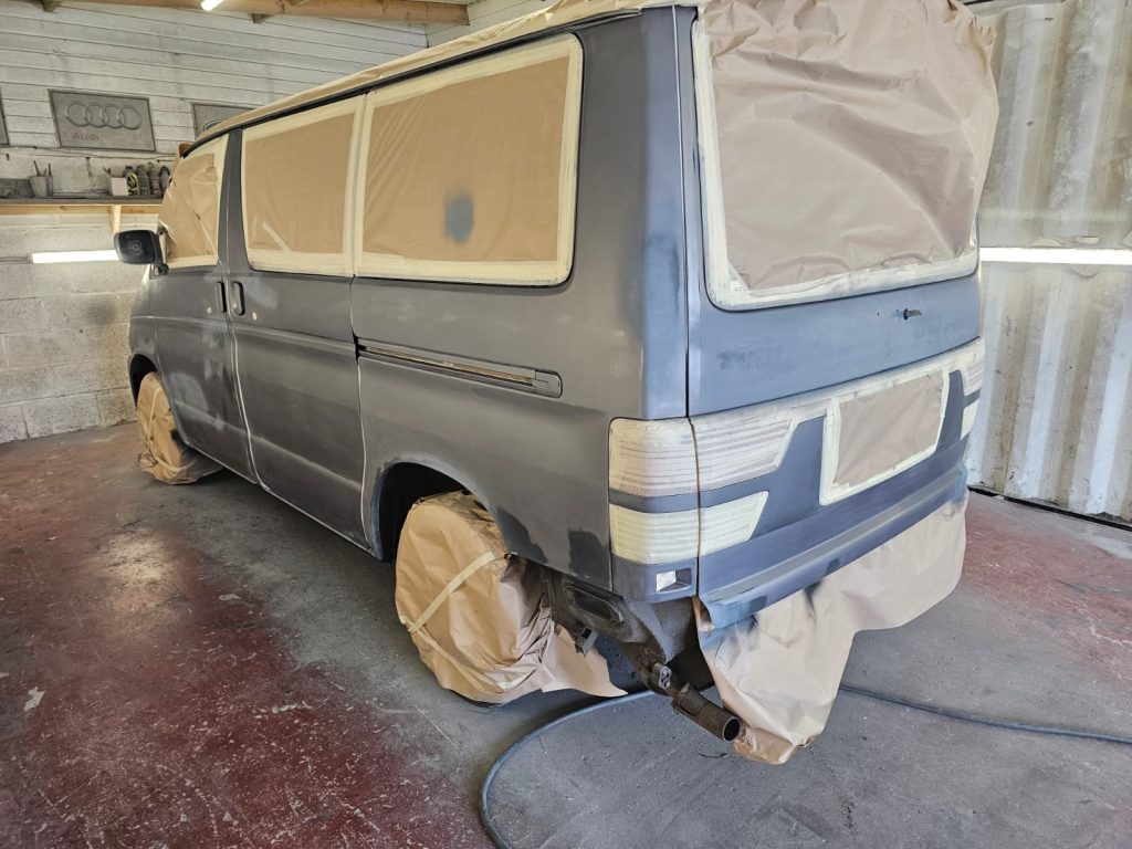 The first step in our restoration journey was to strip the Bongo down to its core. We removed all the old, damaged, and scratched paintwork, taking it back to bare metal where necessary. This allowed us to address any underlying issues, such as rust or corrosion, that could compromise the vehicle’s longevity.