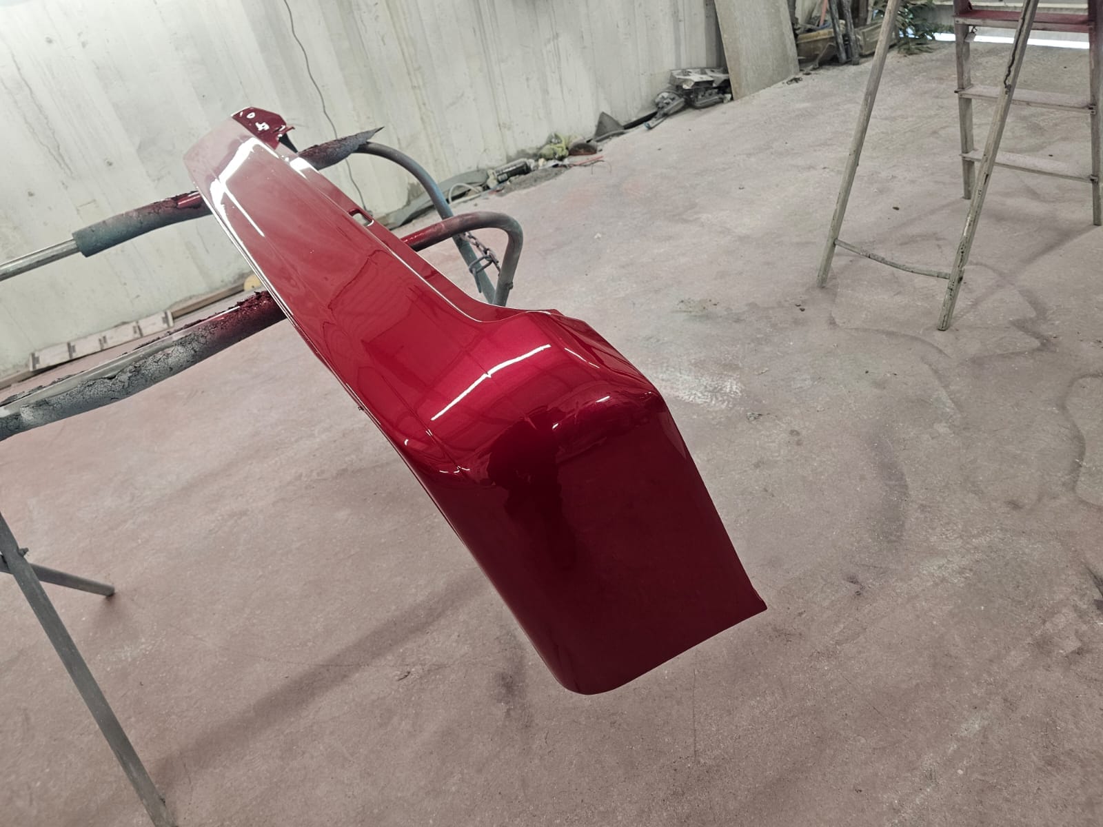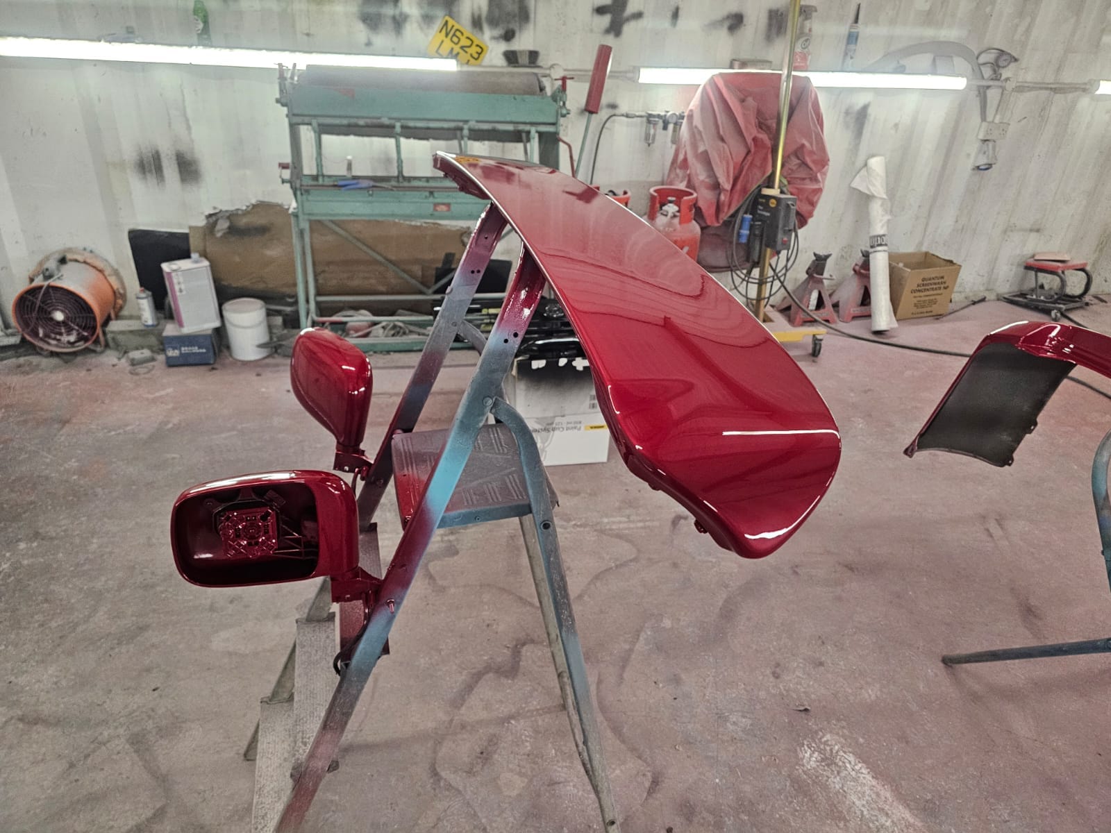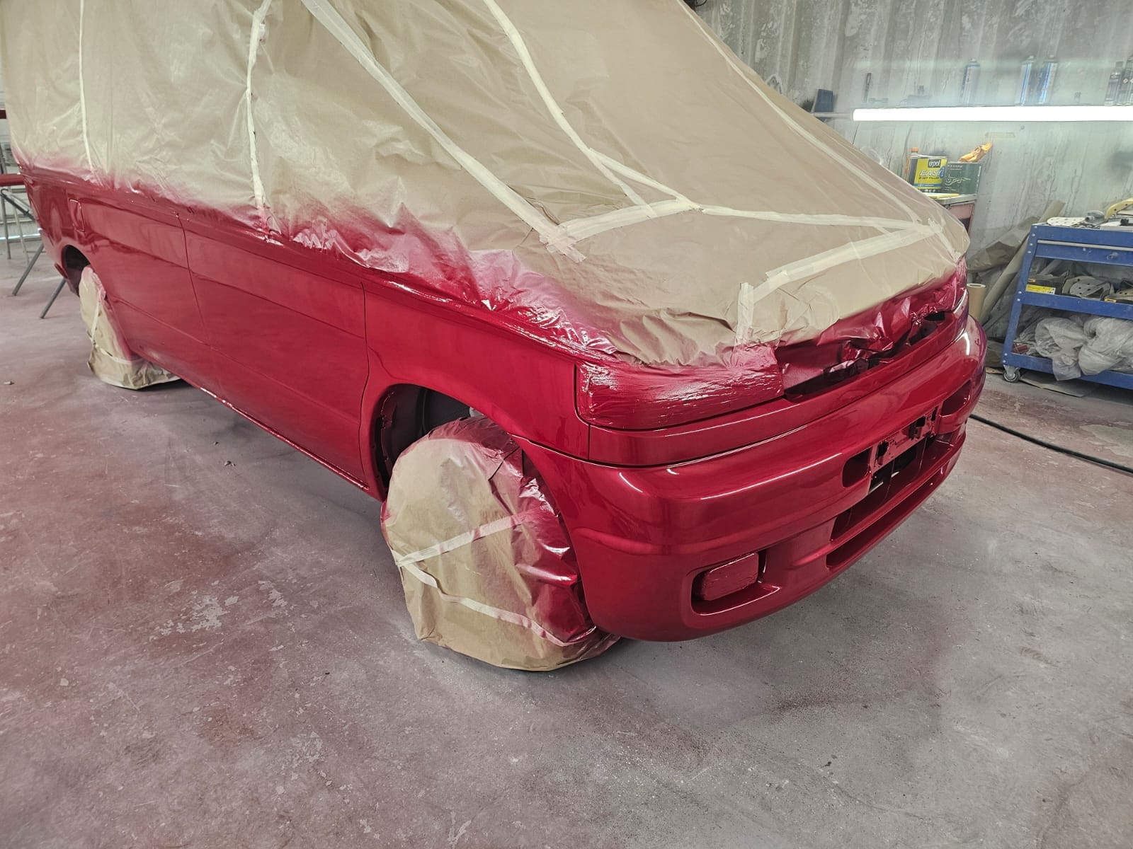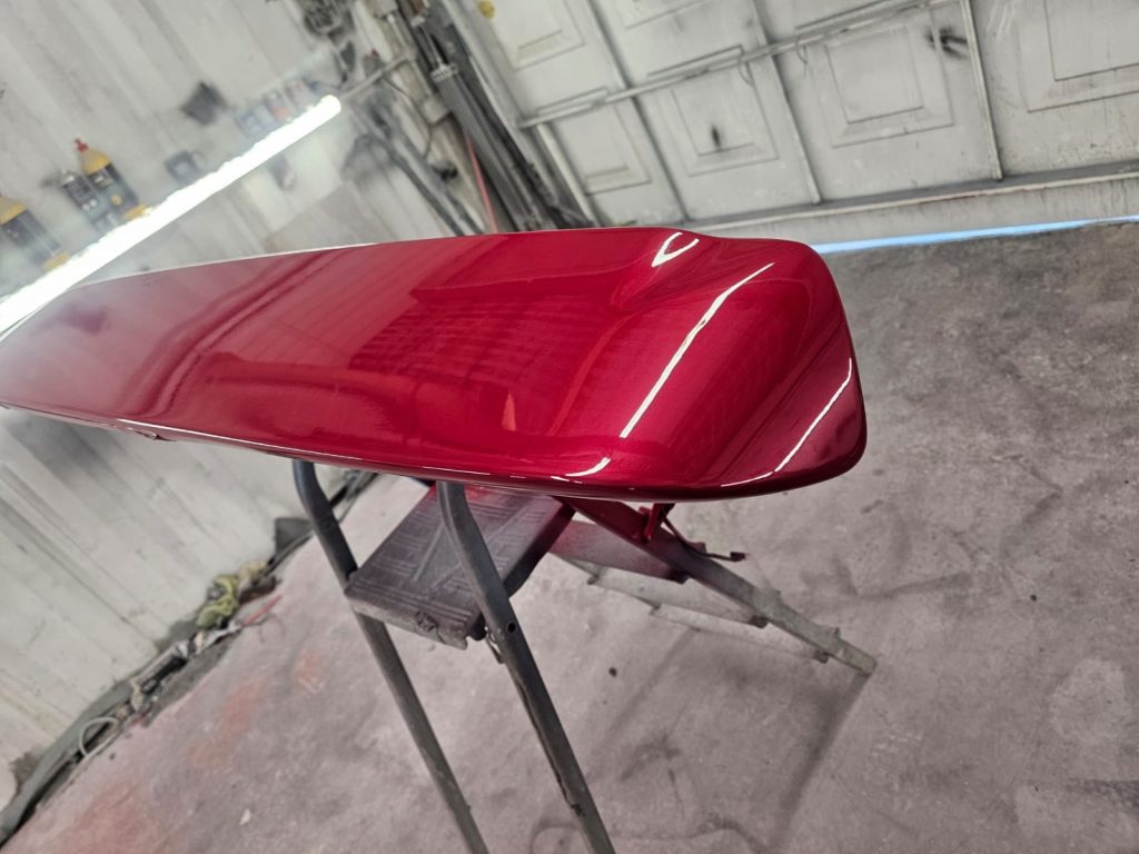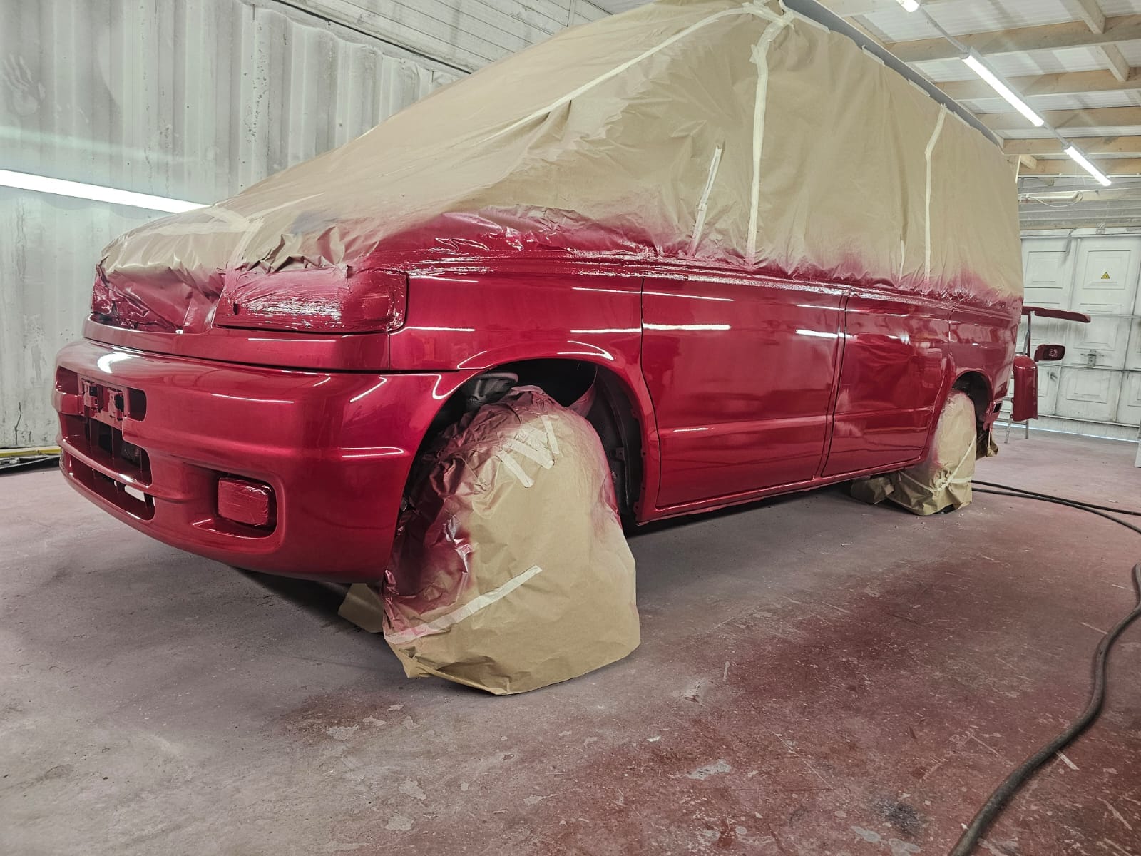 As we began the repair, the customer took notice of the various color change options we’ve showcased on our website. Inspired by the transformations they saw, they decided to seize the moment and give their Bongo a complete visual overhaul. After discussing options, they chose a vibrant candy red pearl for the bottom half of the van—a color that’s as bold as it is beautiful.