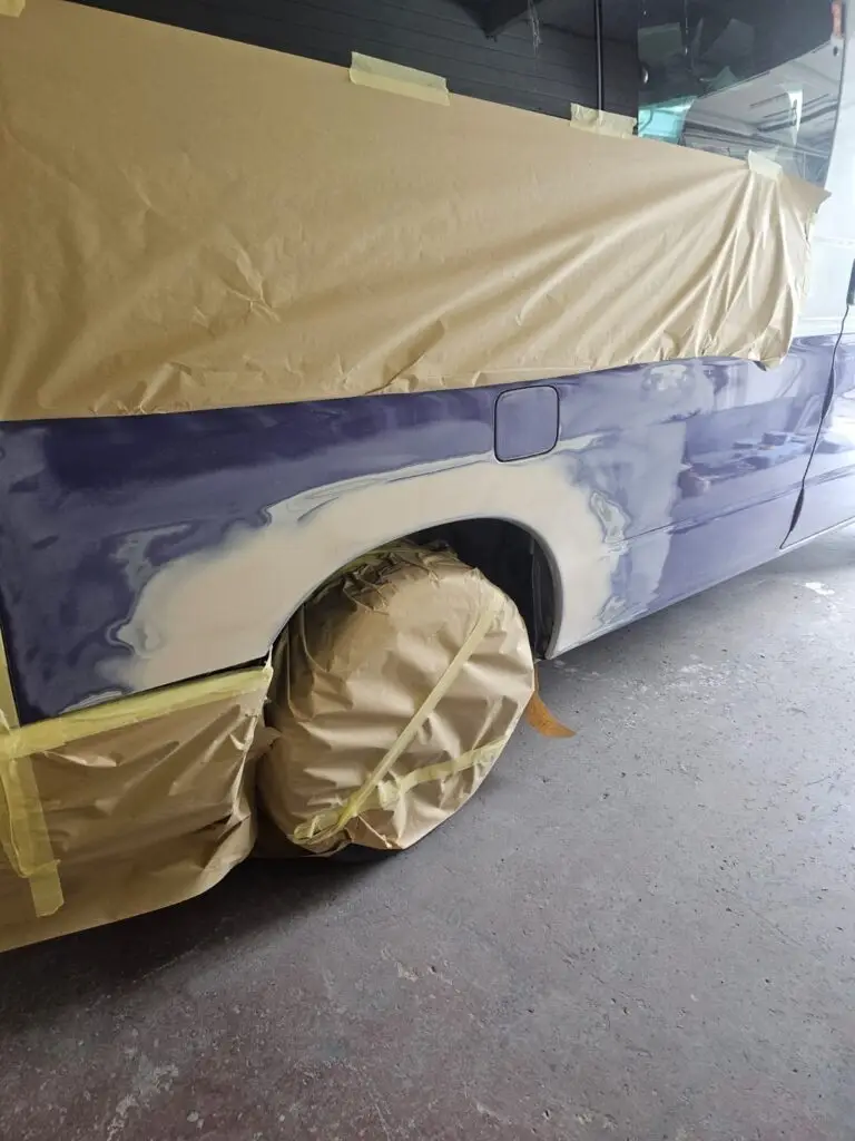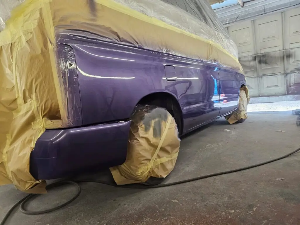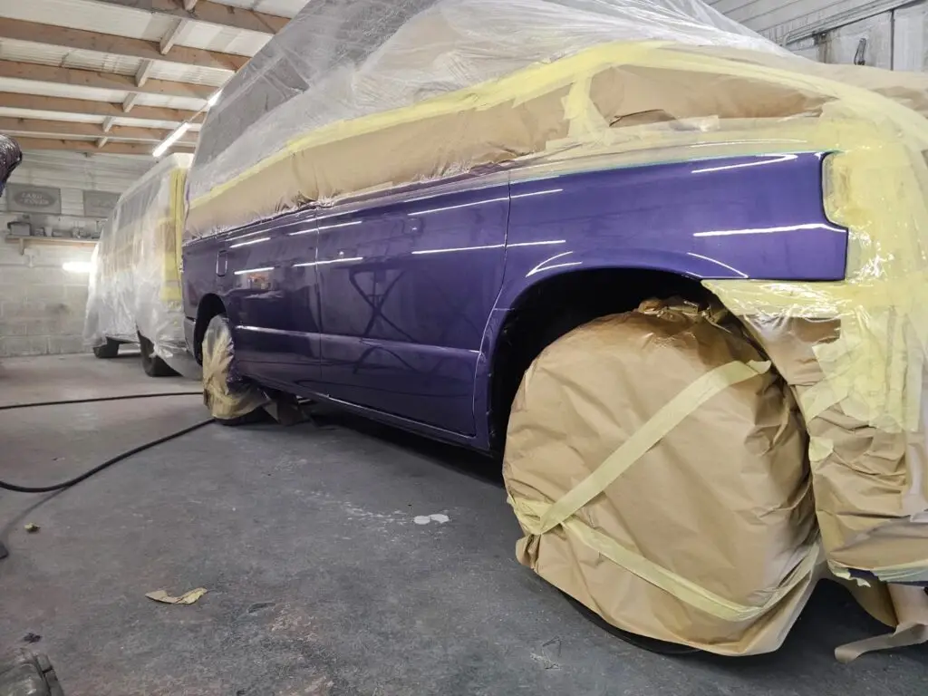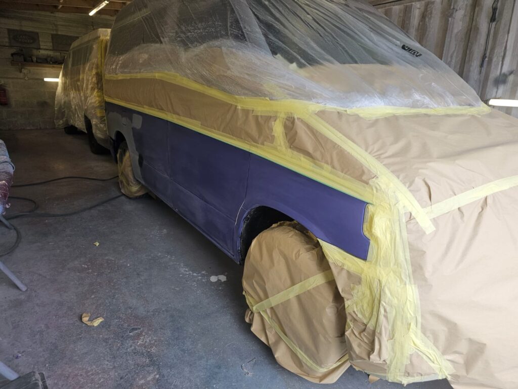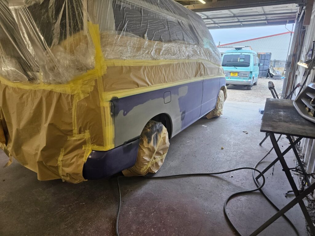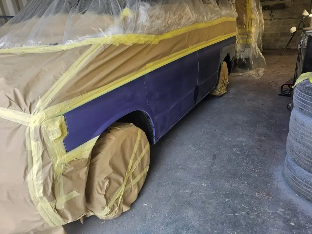 The metallic purple lower half gives the van a fresh, distinctive look, while the new arches and careful preparation ensure it has the strength and durability to match.