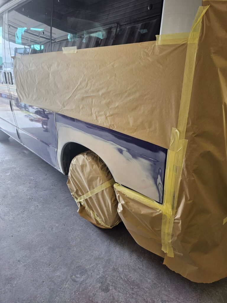 We worked through the lower panels, addressing imperfections and ensuring a smooth surface throughout. Because of this, the van was fully ready for paint without compromise.