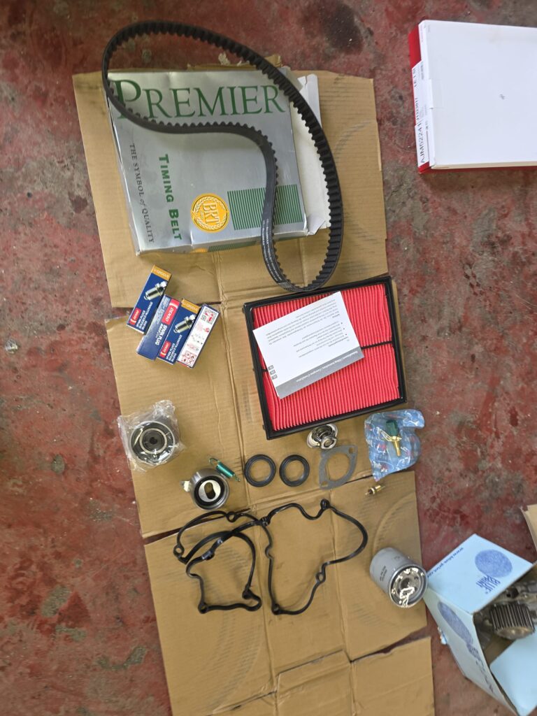 This included a new timing belt, water pump, crank and camshaft seals, temperature sensors, rocker cover gasket, oil and filter, spark plugs and air filter.