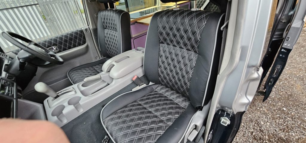 - Retrimmed Door Cards and Front Seats: Designed to match the Rock & Roll bed fabric for a seamless and stylish interior.