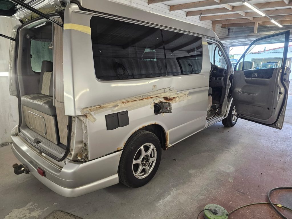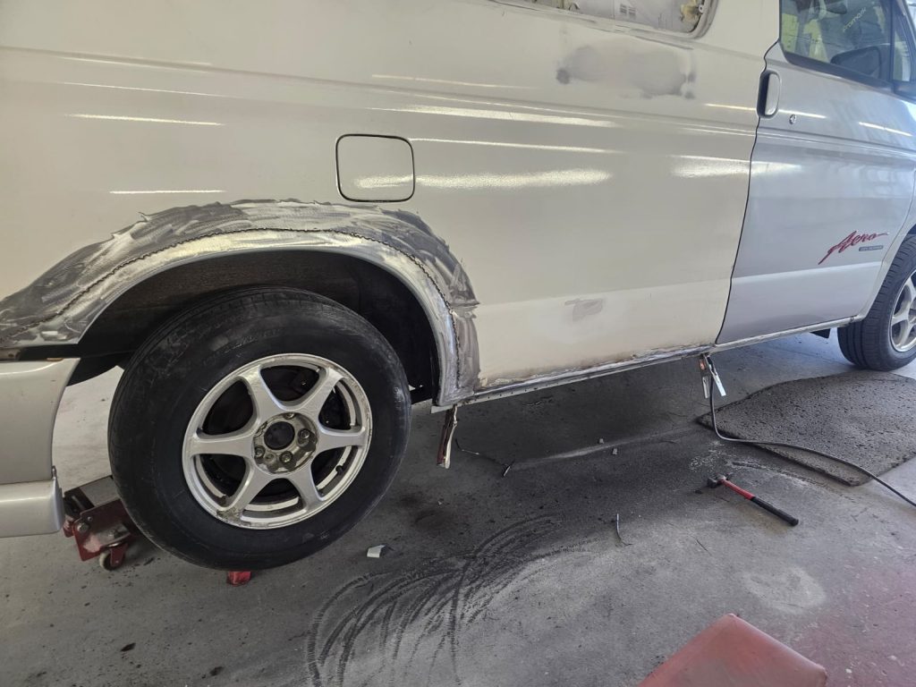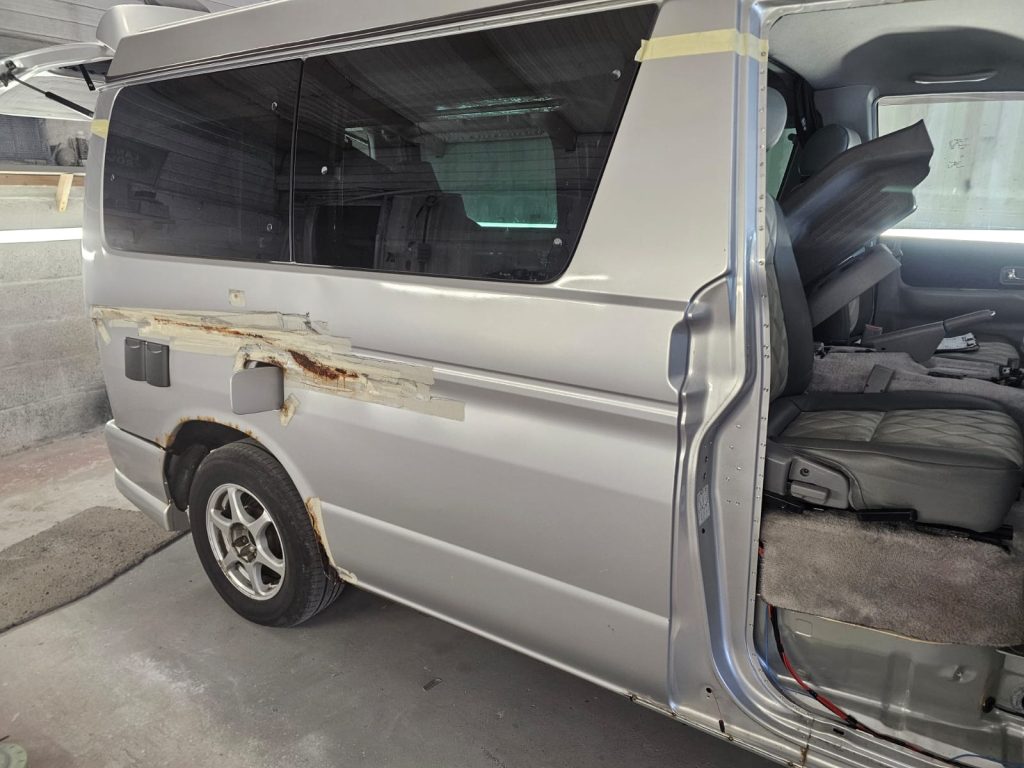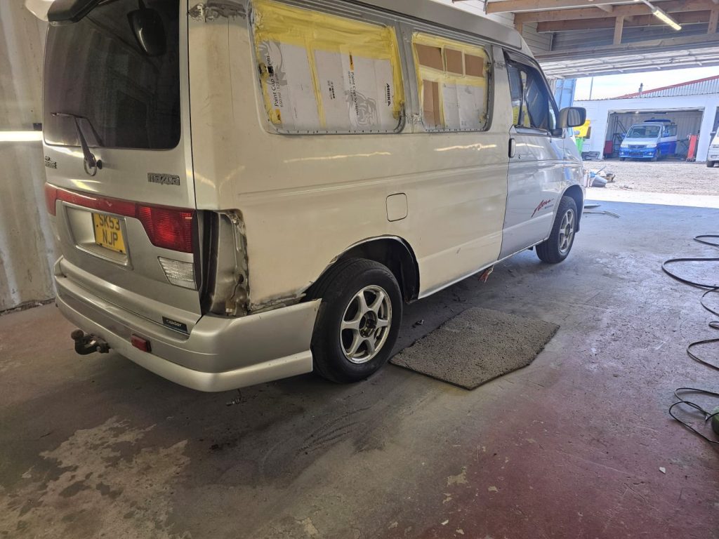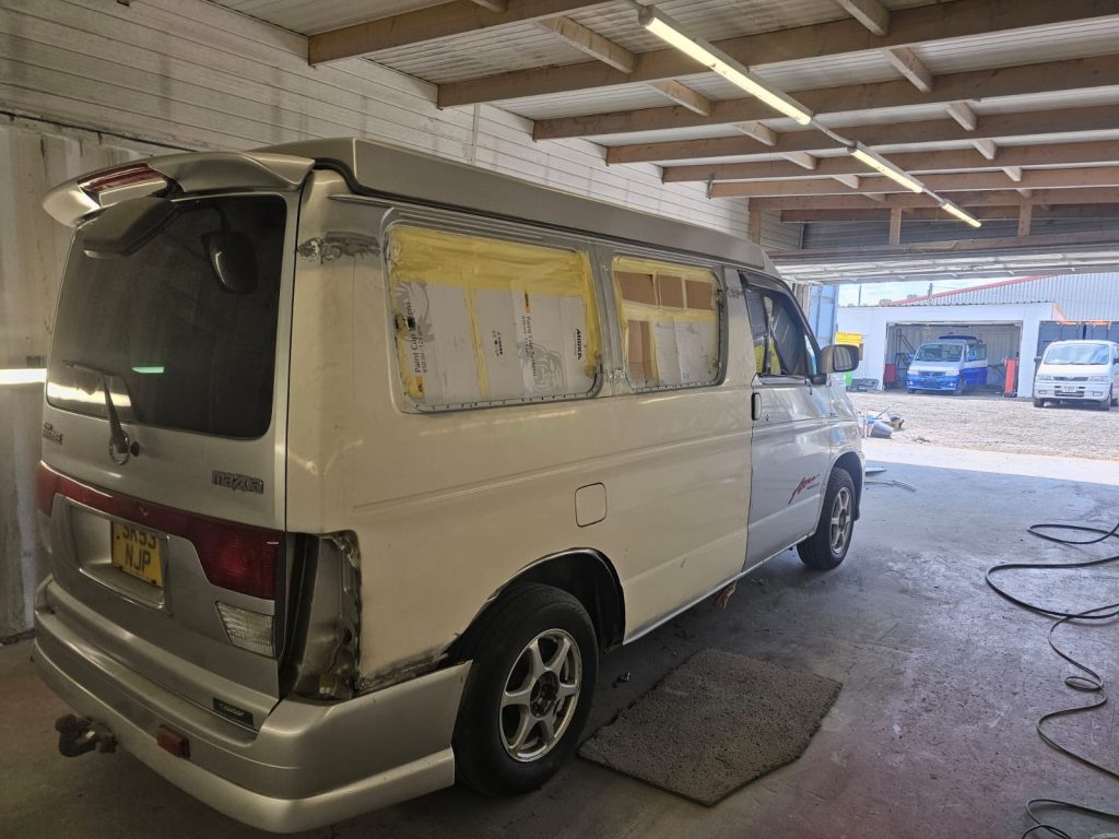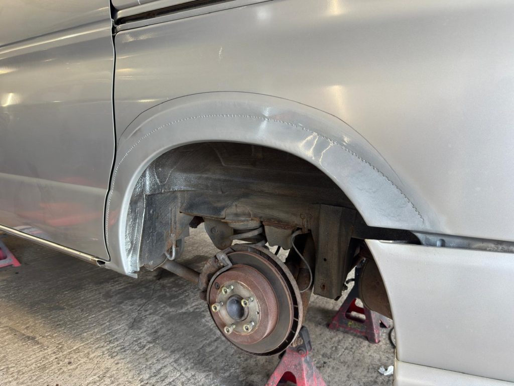 While structural integrity is vital, the visual result matters too, especially to a proud Bongo owner. Once all the welding was complete, we set about repairing surface imperfections across both sides of the van. This included smoothing out blemishes from years of wear and tear and preparing the surface for a full repaint.
