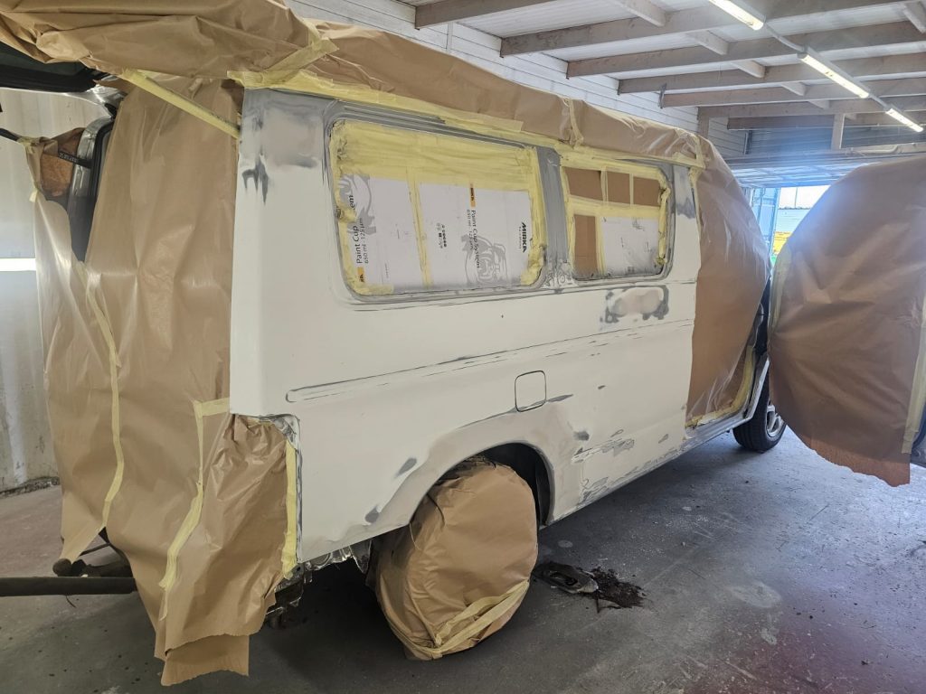 We resprayed both sides of the van in beautiful, matching silver, restoring it to its original glory. Every corner was carefully masked, every panel expertly coated, and the end result was a gleaming finish that looked as though it had just rolled out of the factory.