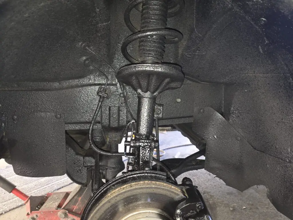 First, we thoroughly rubbed down the chassis to remove surface corrosion and prepare the metalwork. Then, all suspension components were carefully painted black to restore their appearance and provide added protection.