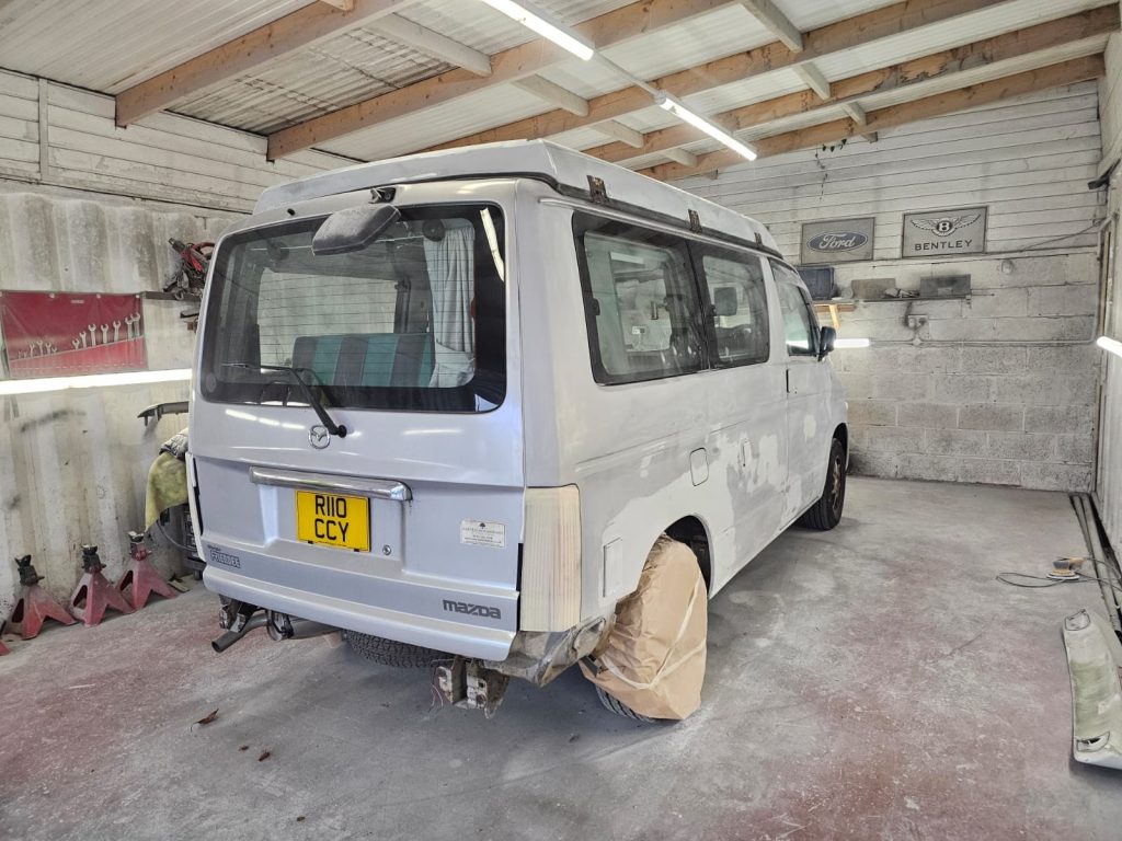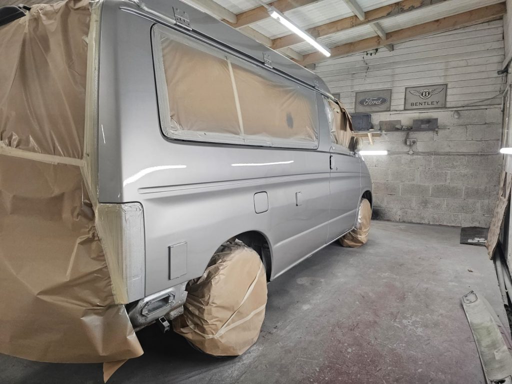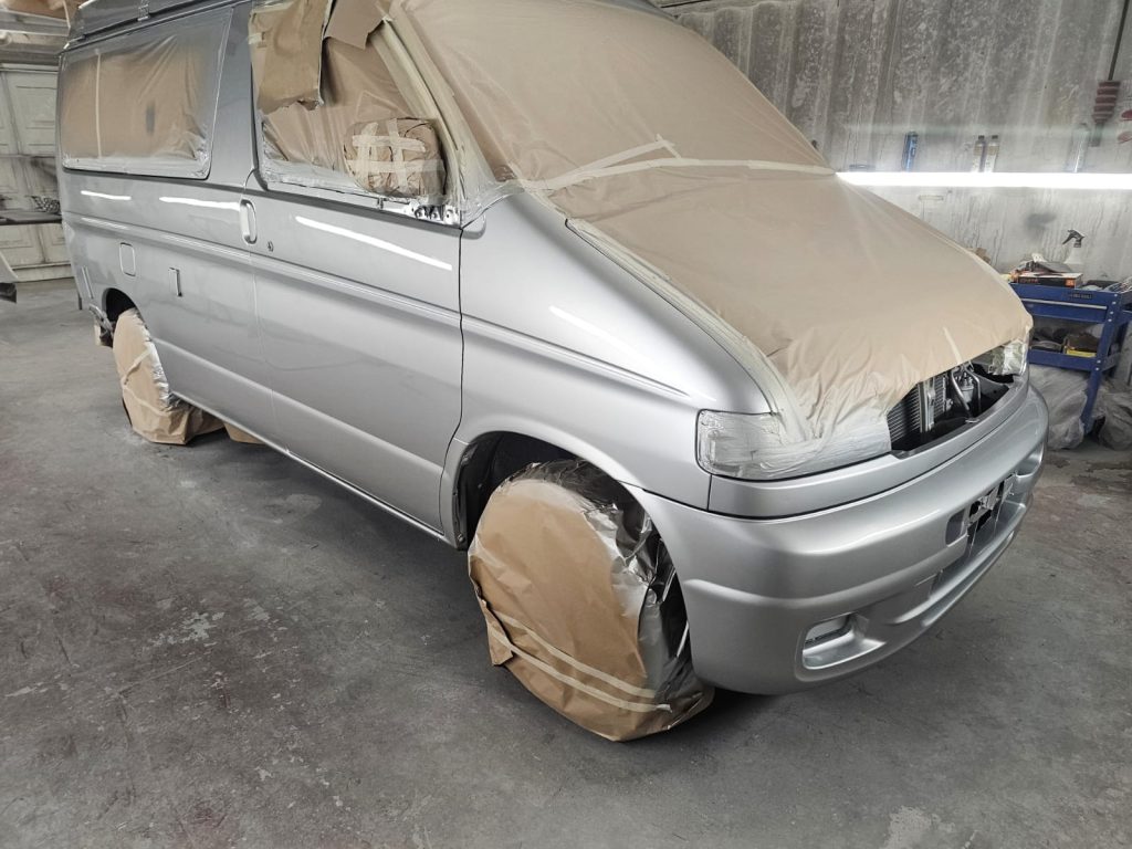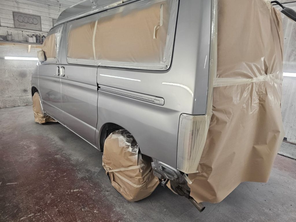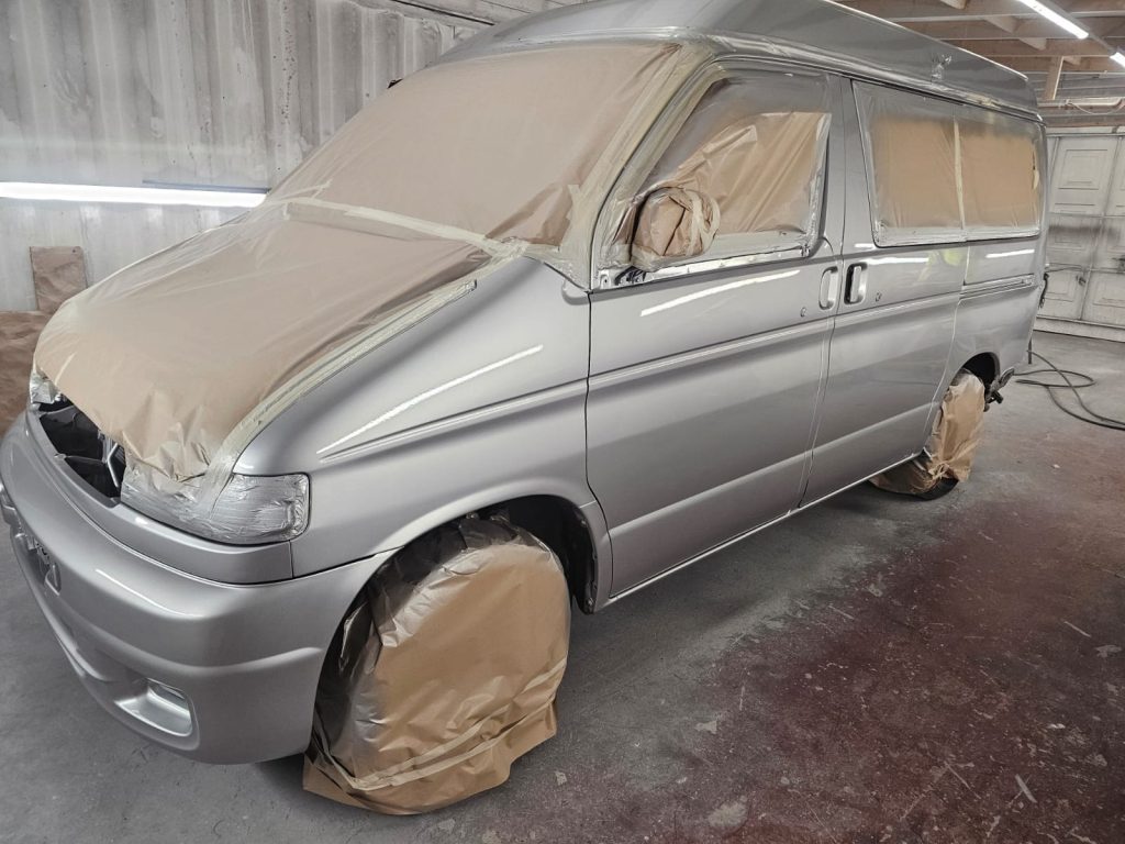 After the structural work, it was time to give this Bongo a makeover with a full respray in the original Mazda Bongo silver, making sure it looked fresh, bright, and ready for the next adventure. We even refreshed the roof and bumpers to bring it all together and ensure that every inch gleamed.