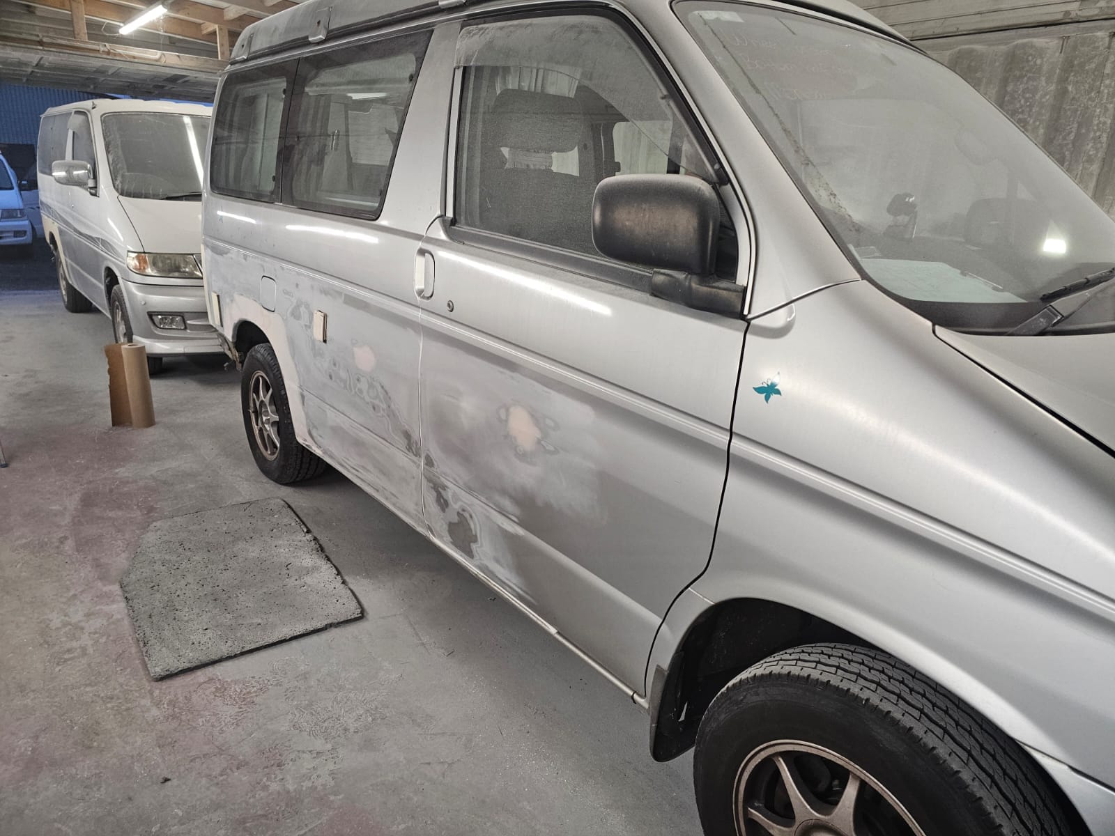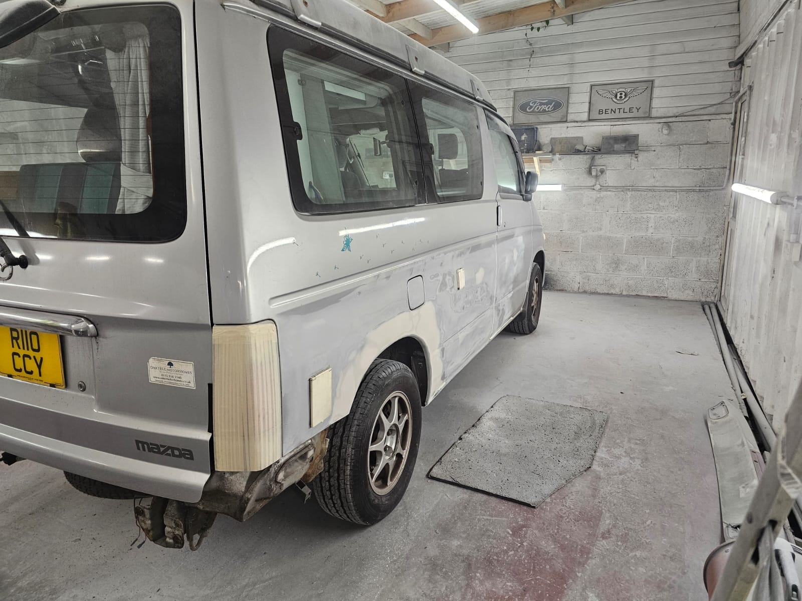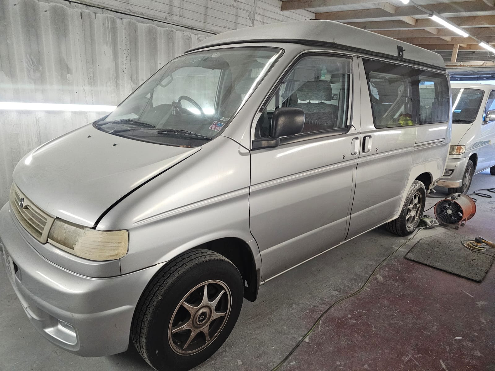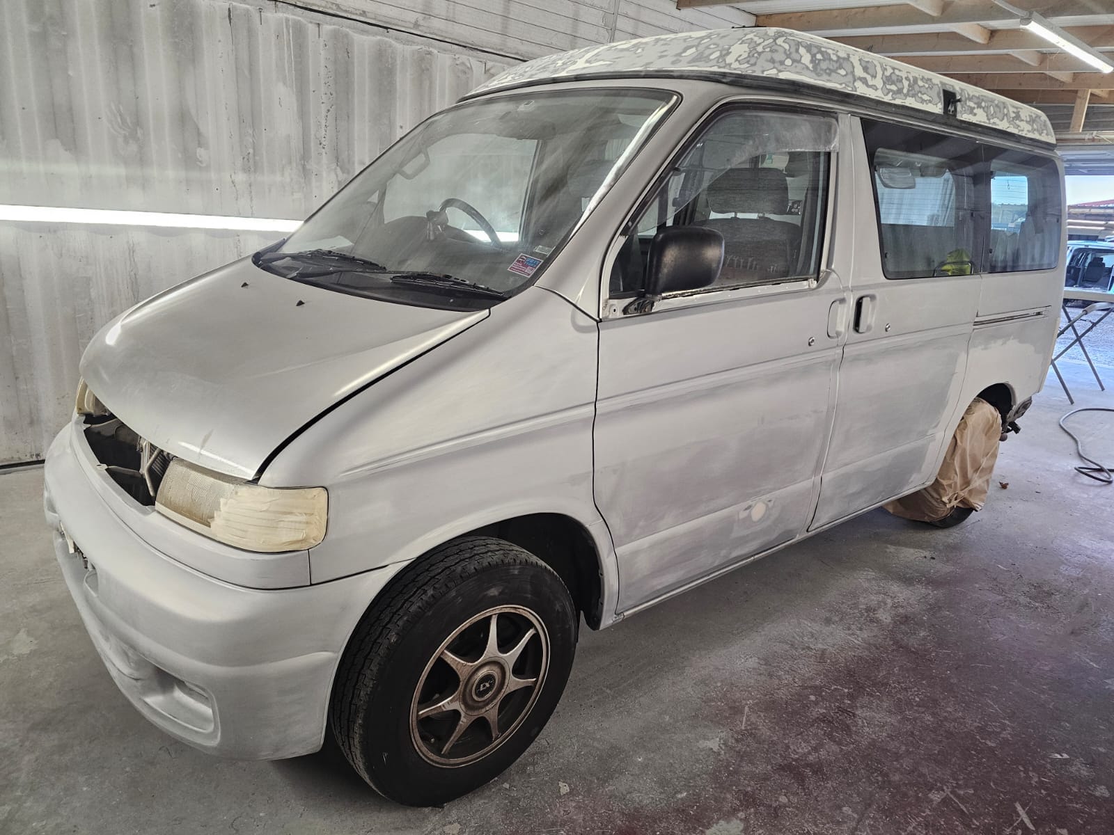 After the structural work, it was time to give this Bongo a makeover with a full respray in the original Mazda Bongo silver, making sure it looked fresh, bright, and ready for the next adventure. We even refreshed the roof and bumpers to bring it all together and ensure that every inch gleamed.
