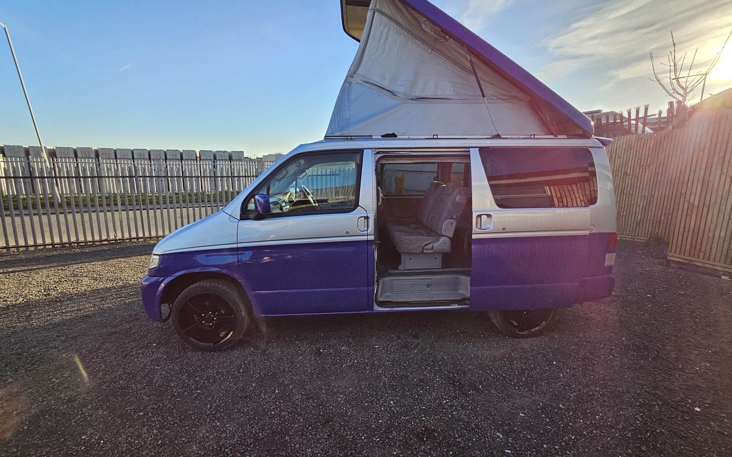 The first thing you’ll notice is the incredible custom paintwork – a Pearlescent Purple & Silver two-tone respray that shimmers beautifully in the sun. To complete the look, we’ve colour-coded the boot spoiler, mirrors, and grille, making this van truly stand out.