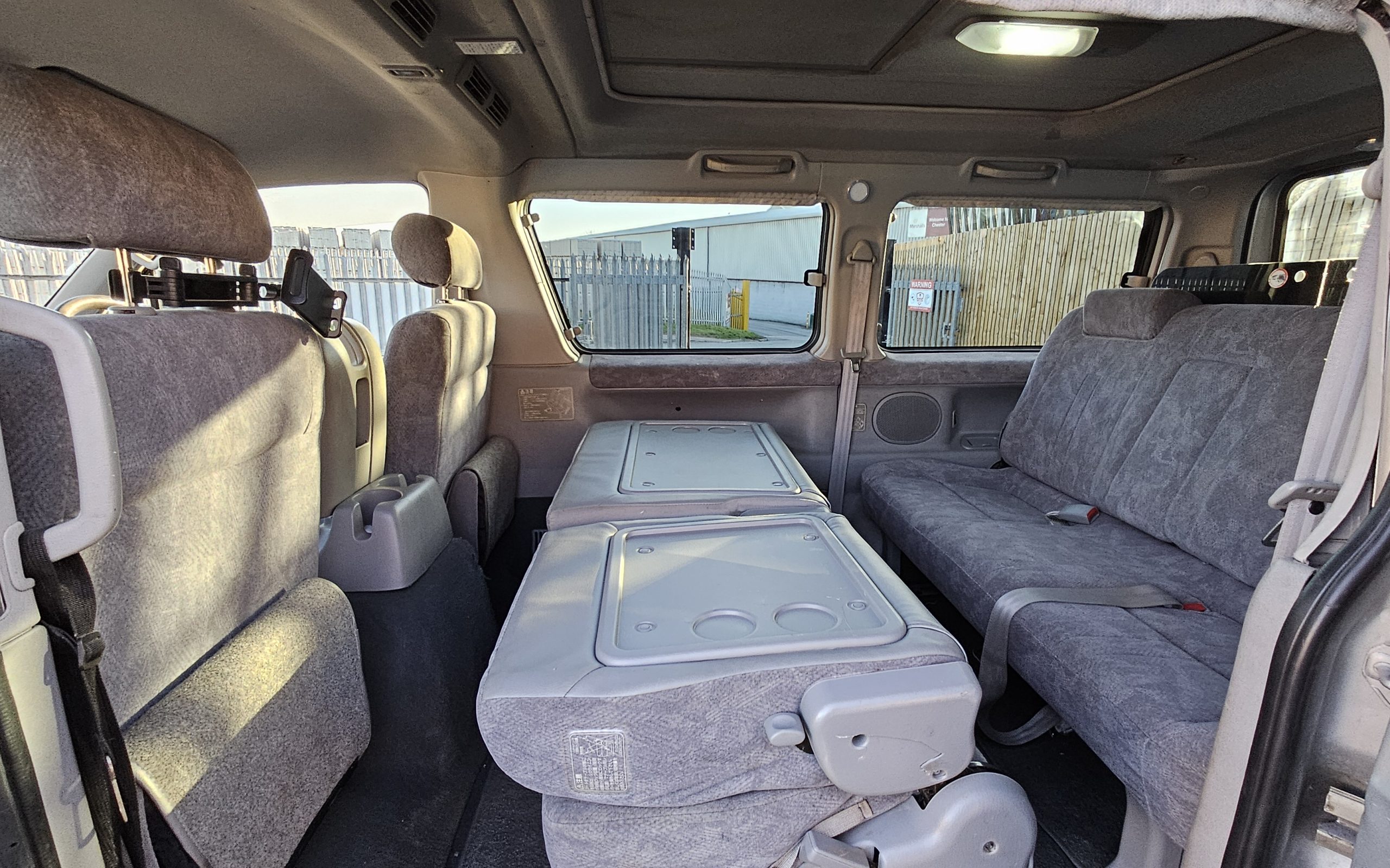 The electric pop-top roof provides an extra sleeping space for two, while the rear seats fold down into a double bed, allowing this van to comfortably sleep up to 4 people.