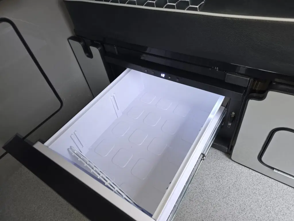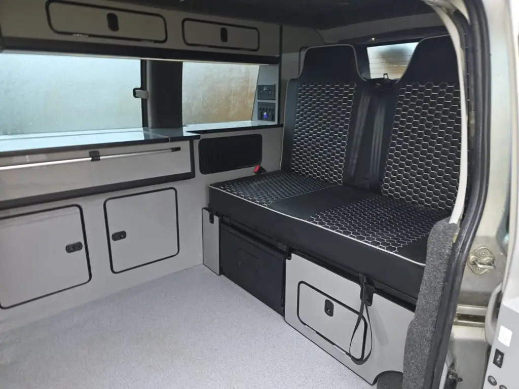 By removing some of the usual refinements from our standard conversion list, we created a large amount of space. Cupboards could be deeper, storage areas could be wider, and there was less visual clutter along the side of the van. Everything revolves around practical load space instead of a long row of appliances.