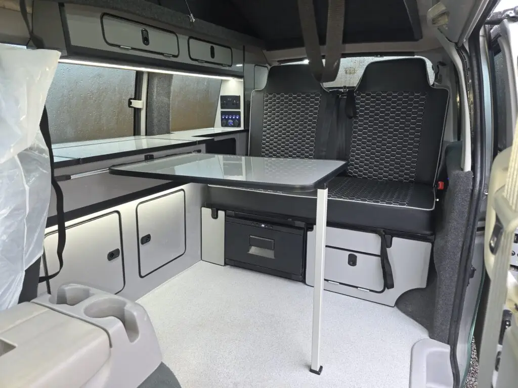 In this case, maximum storage and a clean, open interior mattered more than a list of gadgets. The one-off metallic mint green paintwork turned a tidy import into something entirely personal. Together, those choices created a camper that feels honest and individual, rather than another copy of a standard layout.